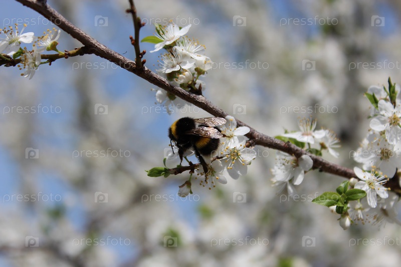 Шмель на цветущей сливе