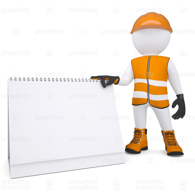 3D белый человек в спецодежде держит календарь
