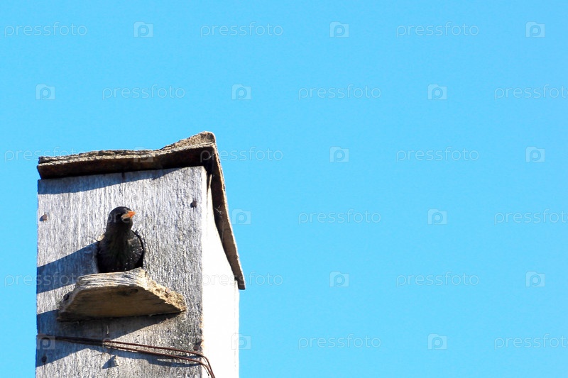 Скворечник для скворца на фоне солнечного неба