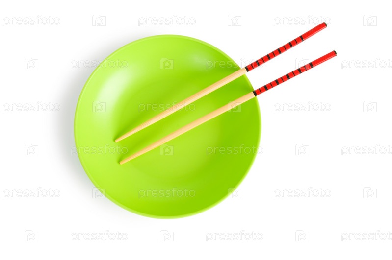 Зеленая тарелка и палочки для суши