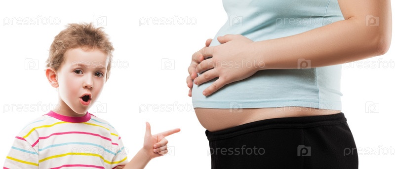 Мальчик показывает на живот беременной матери