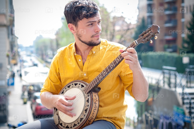 Молодой хипстер играет на банджо