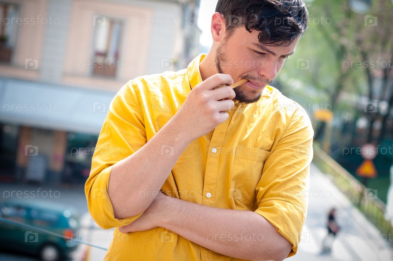 Молодой мужчина курит трубк