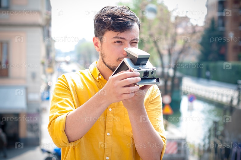 Молодой хипстер со старой камерой