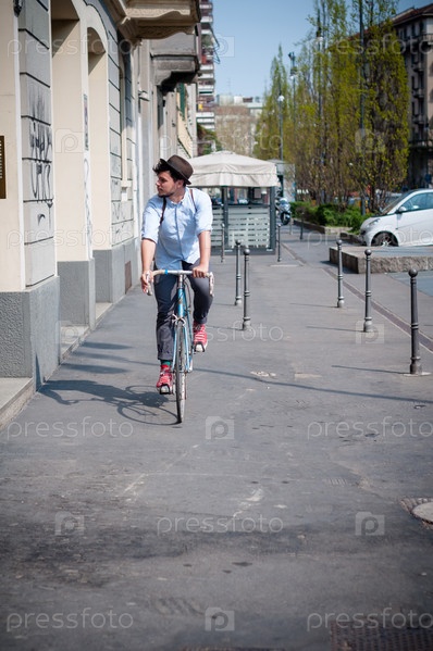 Молодой хипстер на велосипеде