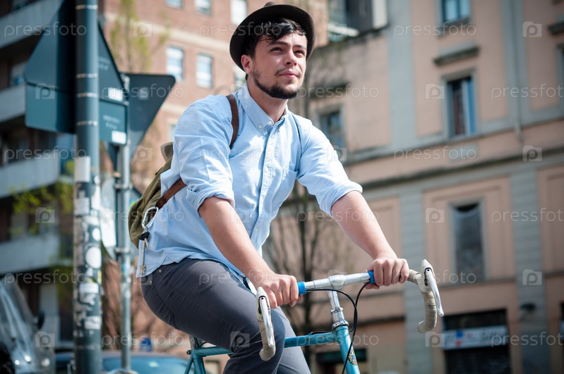 Молодой хипстер на велосипеде