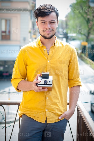 Молодой хипстер со старым фотоаппаратом