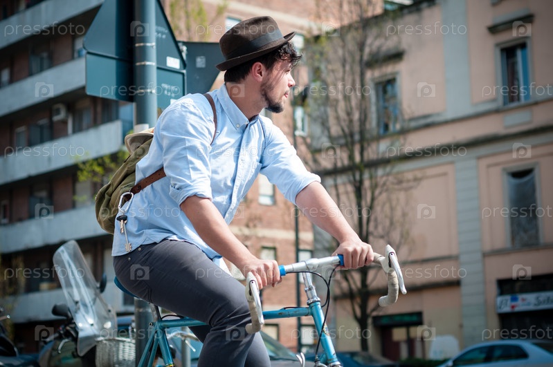 Молодой хипстер на велосипеде
