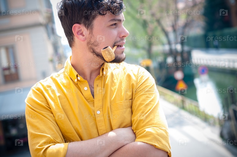 Молодой человек курит трубку