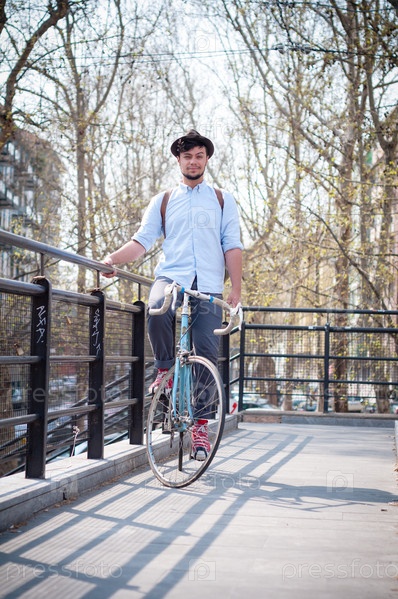 Молодой хипстер на велосипеде