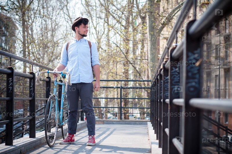 Молодой хипстер на велосипеде
