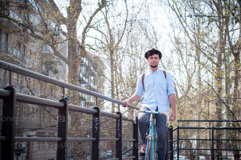 Молодой хипстер на велосипеде