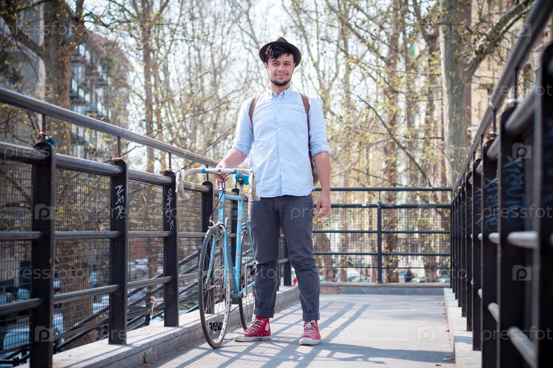 Молодой хипстер на велосипеде