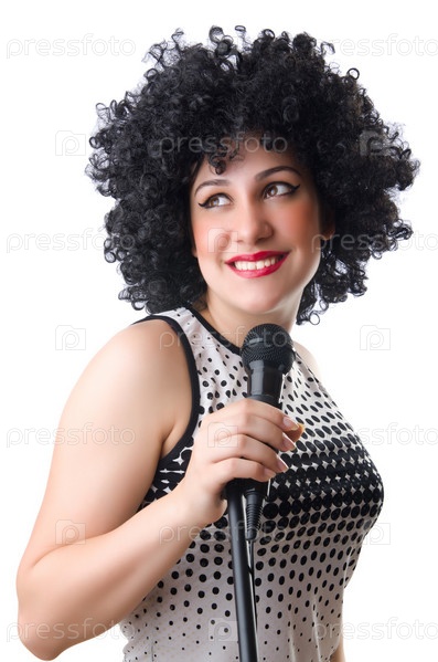Поп-звезда с микрофоном на белом фоне