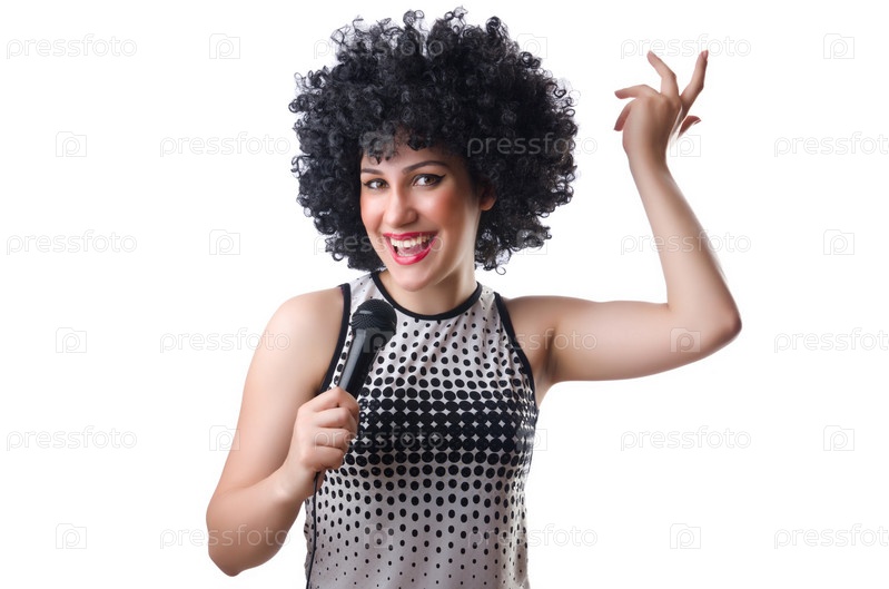 Поп-звезда с микрофоном на белом фоне