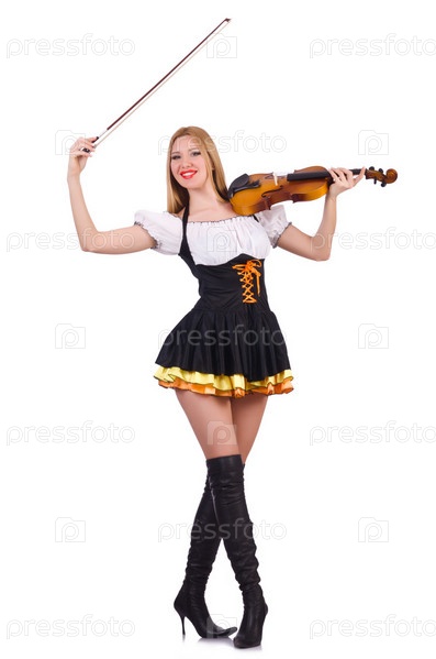 Девушка играет на скрипке на белом фоне