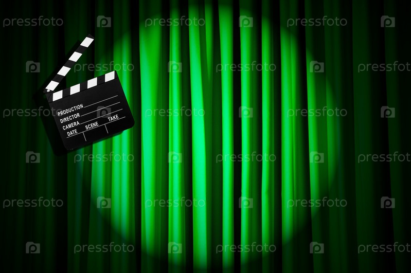 Кино-хлопушка на фоне занавеса