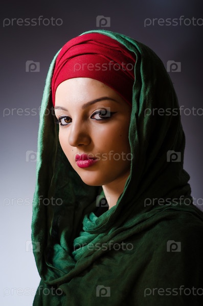 Мусульманская женщина в платке в концепции моды