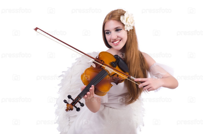 Молодая скрипачка, изолированная на белом