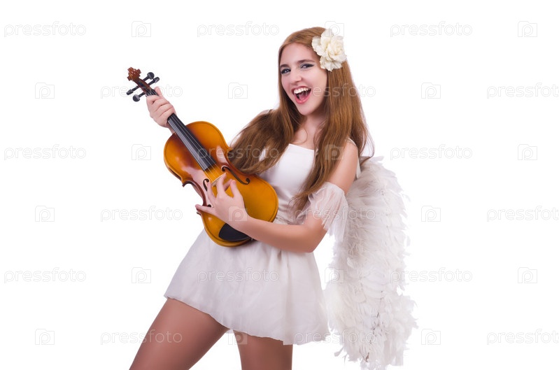 Молодая скрипачка, изолированная на белом