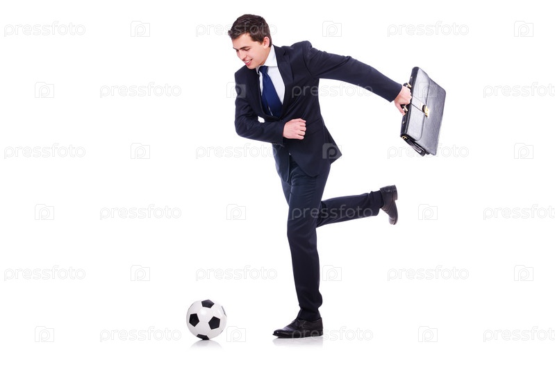 Человек с футбольным мячом, изолированный на белом