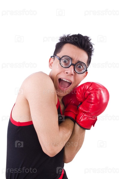 Смешной боксер, изолированный на белом фоне