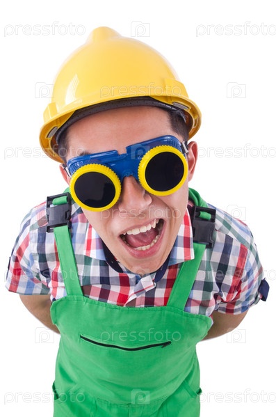 Смешной строительный рабочий, изолированный на белом