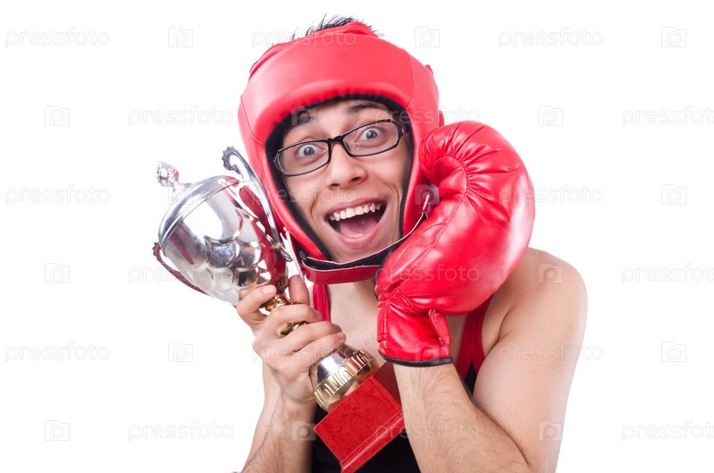 Смешной боксер, изолированный на белом фоне