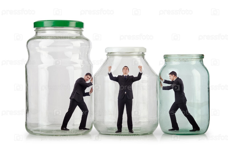 Молодой предприниматель в стеклянной банке