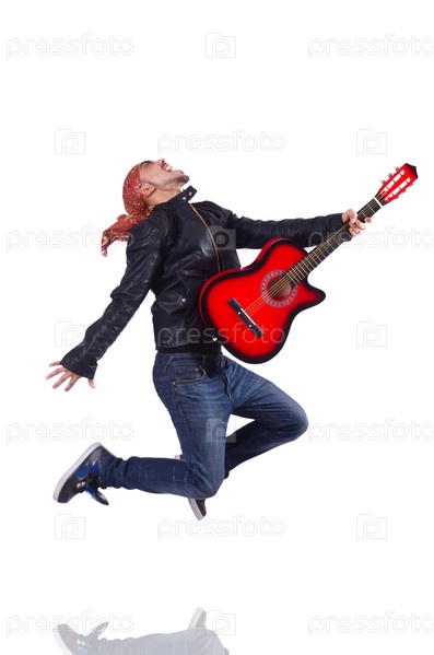 Гитарист, изолированный на белом фоне