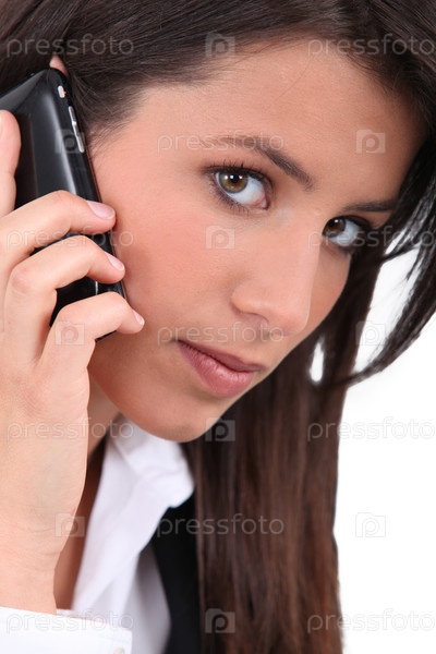 Портрет брюнетки с мобильным телефоном