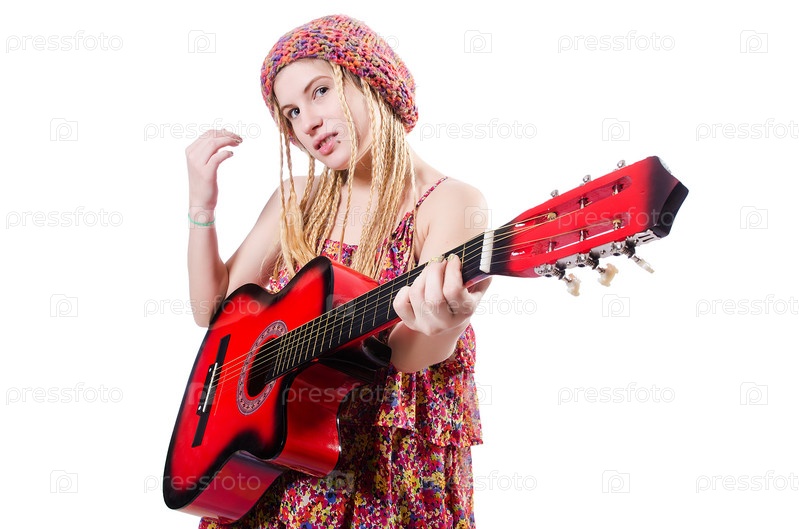 Гитаристка, изолированная на белом