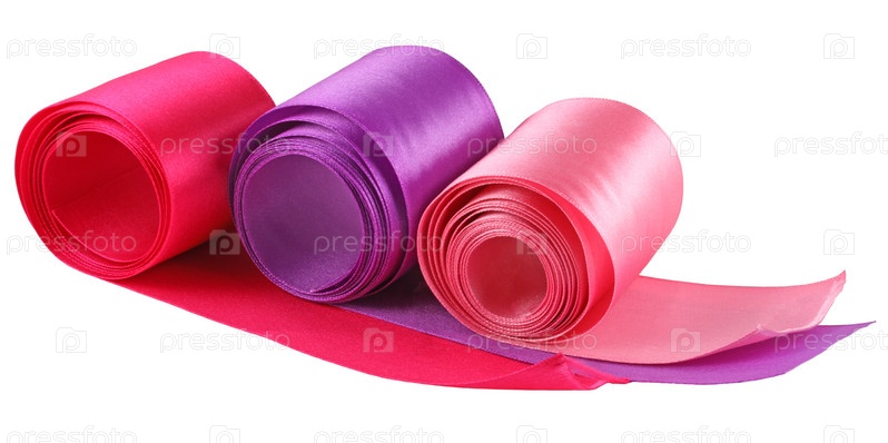 Фиолетовая, красная и розовая ленты на белом фоне