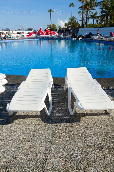 Плавательный бассейн, окруженный шезлонгами
