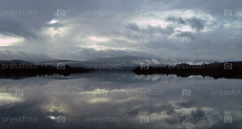 Хмурое небо, отраженное в озере, Шотландия