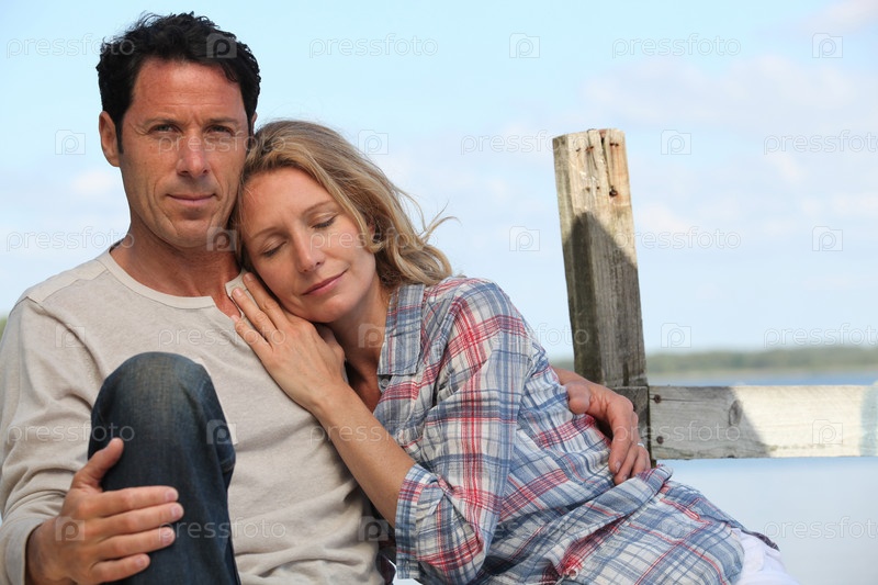 Пара отдыхает на берегу озера
