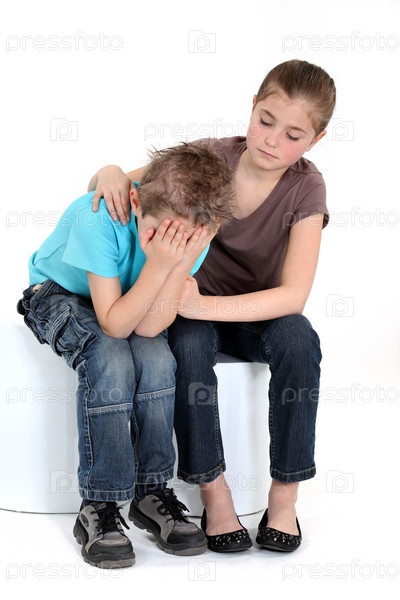 Маленькая девочка утешает альчика