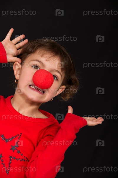 Смешная маленькая девочка с красным носом