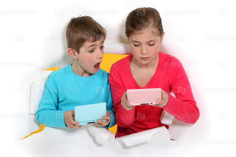 Двое детей играют в видео-игры