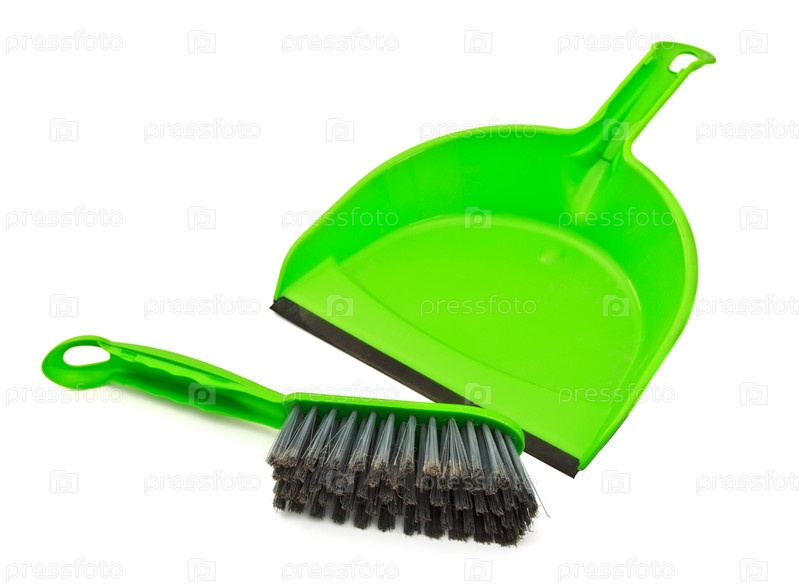 Щетка и совок на белом фоне