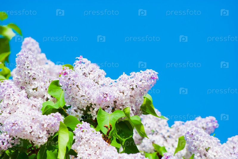 Розовая сирень в голубом небе