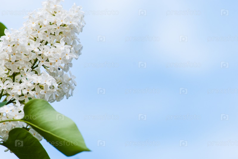 Белая сирень в голубом небе