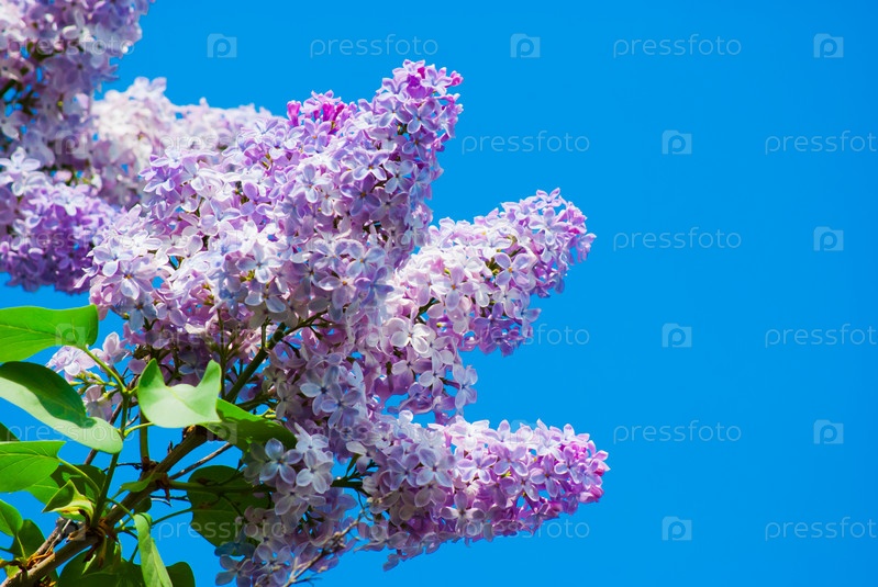 Фиолетовая сирень в голубом небе