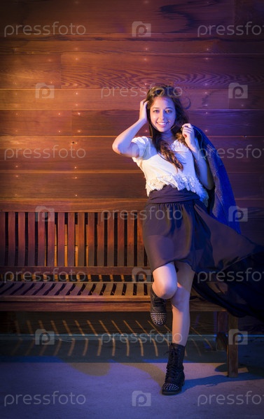 Портрет молодой женщины смешанной расы на фоне деревянной стены