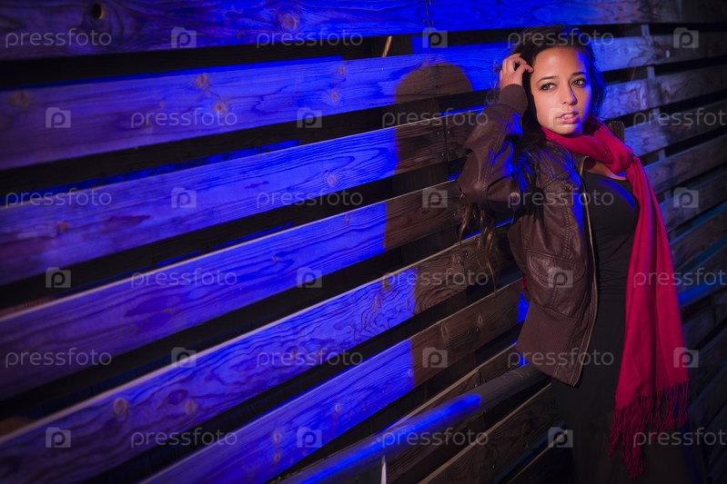 Молодая женщина на фоне деревянной стены