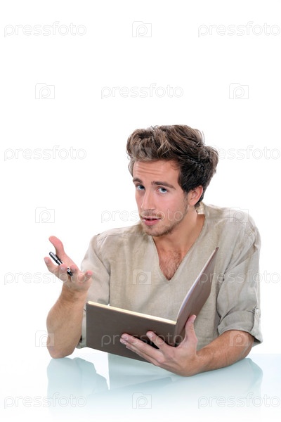 Мужчина пишет в журнале