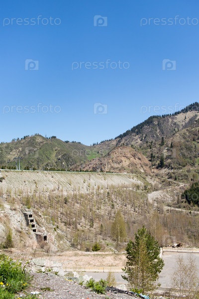 Панорама зеленых гор и голубого неба в Чимбулак, Алматы, Казахстан