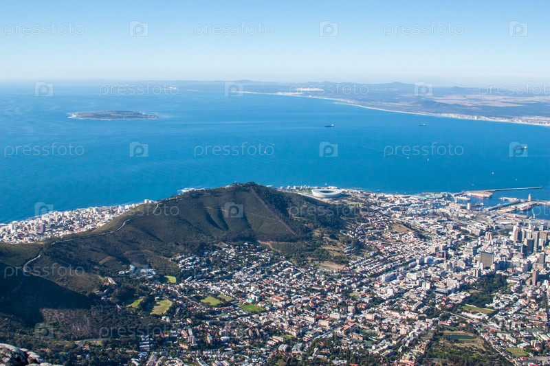 Живописный вид Кейптауна, Столовая гора, Южная Африка с воздуха