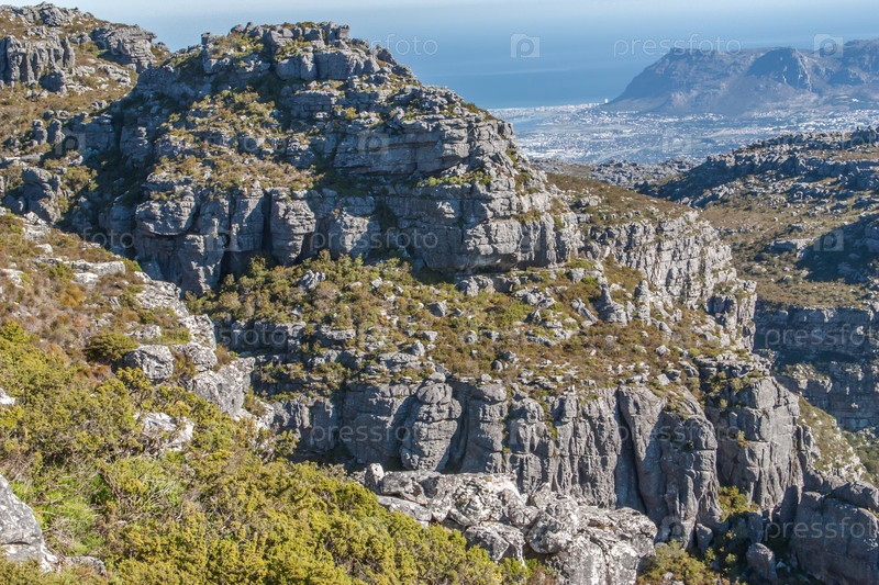 Живописный вид, Кейптаун, Столовая гора, Южная Африка с высоты