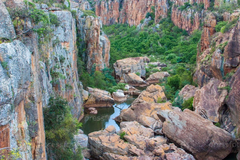 Каньон Блайд Ривер, Южная Африка, Мпумаланга, летний пейзаж, красные скалы и вода